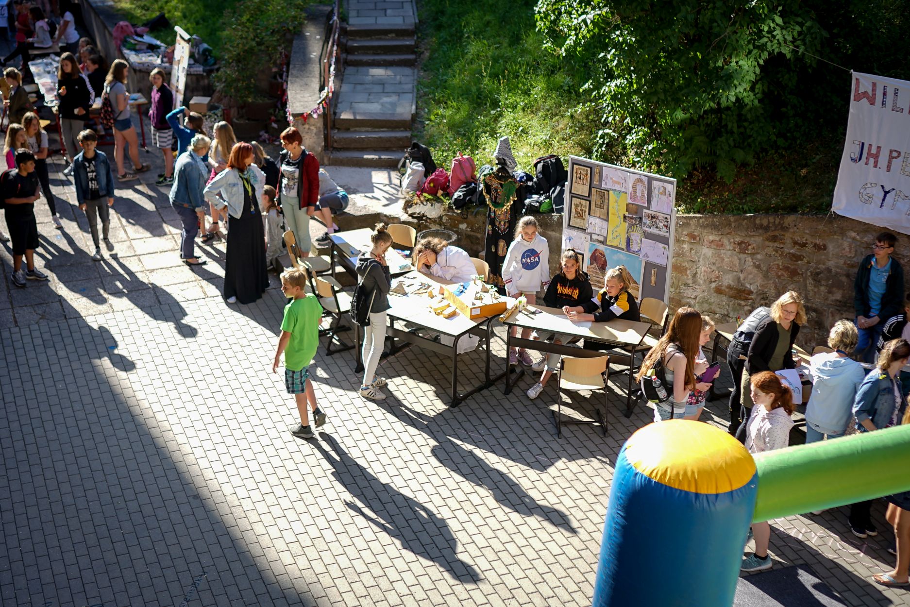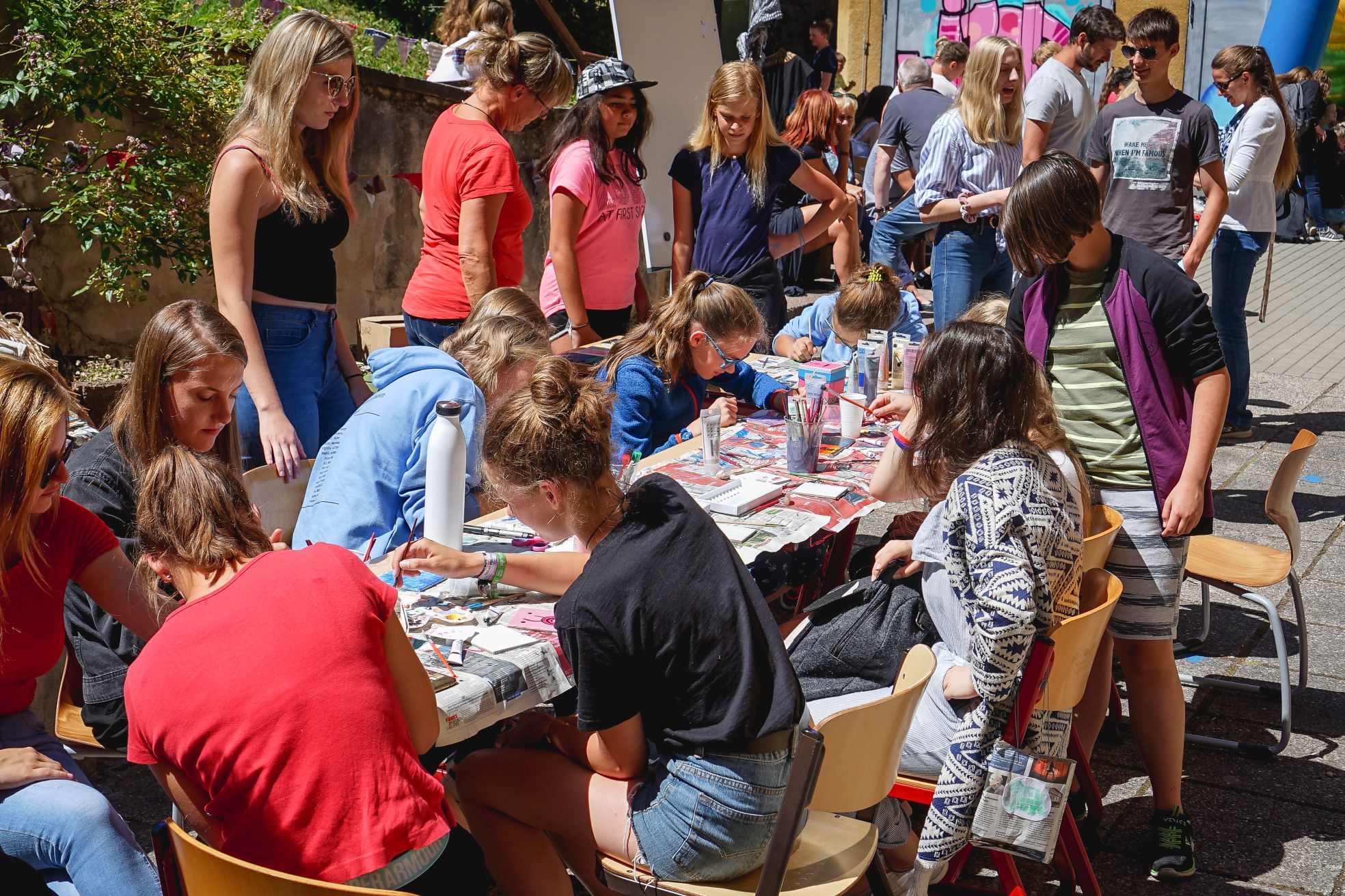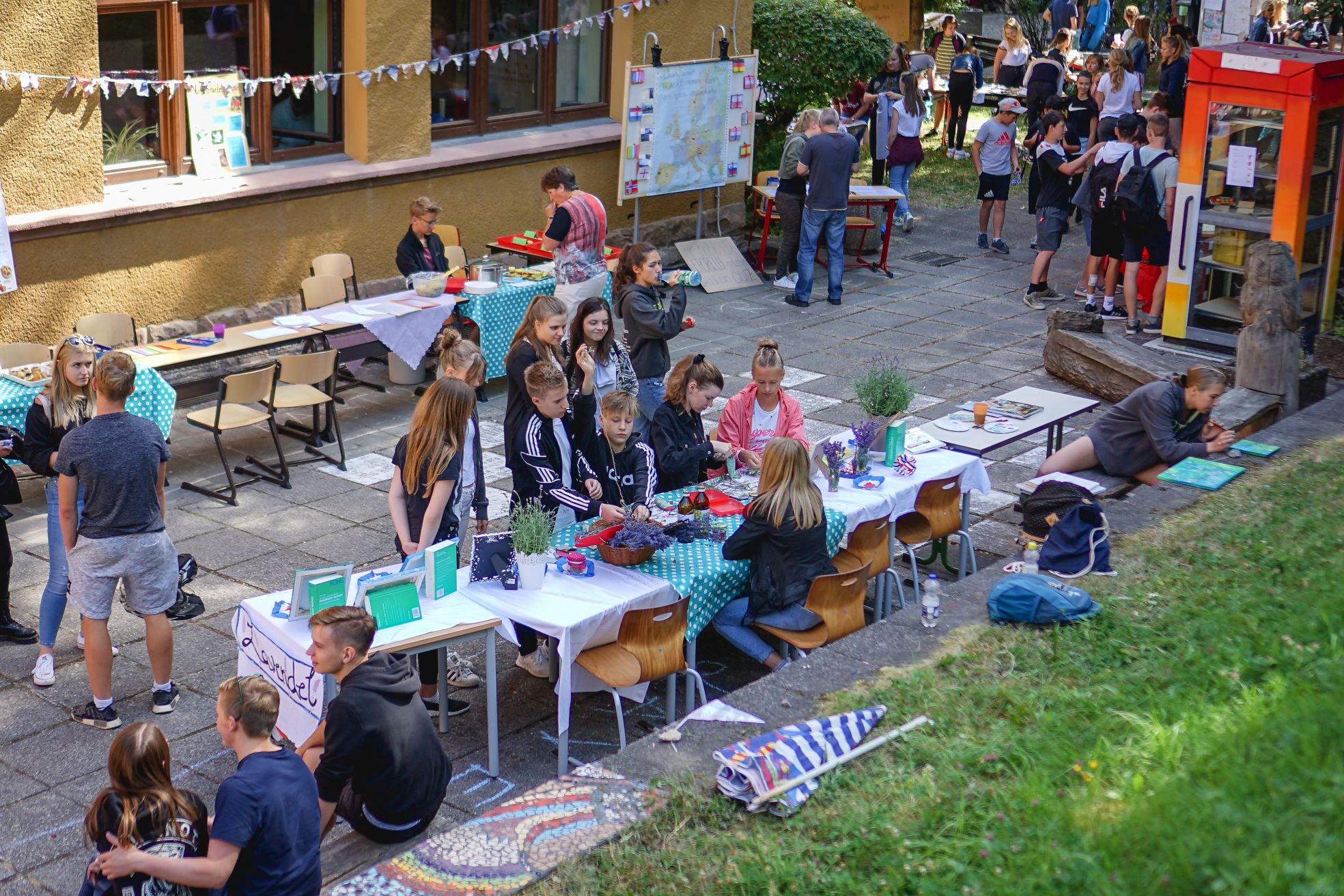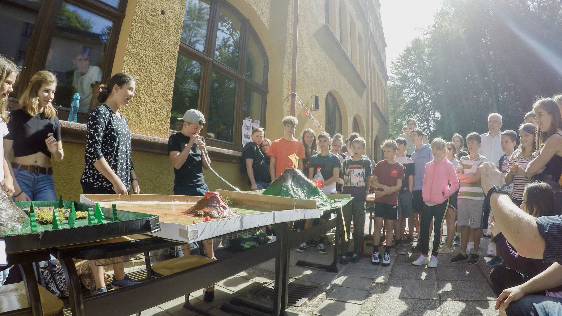 In drei Tagen um die Welt - das war das Motto unserer diesjährigen Projekttage. Jede Projektgruppe wählte sich ein Land und beschäftigte sich mit Kultur und Traditionen. Viel wurde gelernt und ausprobiert: Vulkane bauen, impressionistisch malen, indisch kochen, chinesische Schriftzeichen kalligraphieren und vieles vieles mehr. Am vierten Tag präsentierte dann jede Projektgruppe einen Stand, an dem man einige der Aktivitäten selbst erleben konnte. Wie bereits Tradition sorgten die Elftklässler für das leibliche Wohl und begannen damit, ihre Abikasse zu füllen.